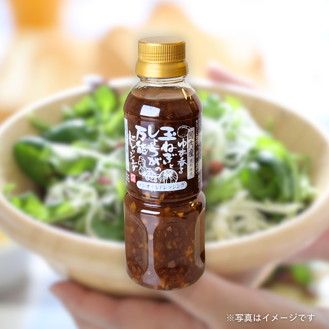 ゆずのさわやかな酸味と存在感のある玉ねぎの食感が特徴のドレッシングです。サラダはもちろん揚げ物、焼き魚などにかけてご使用ください。