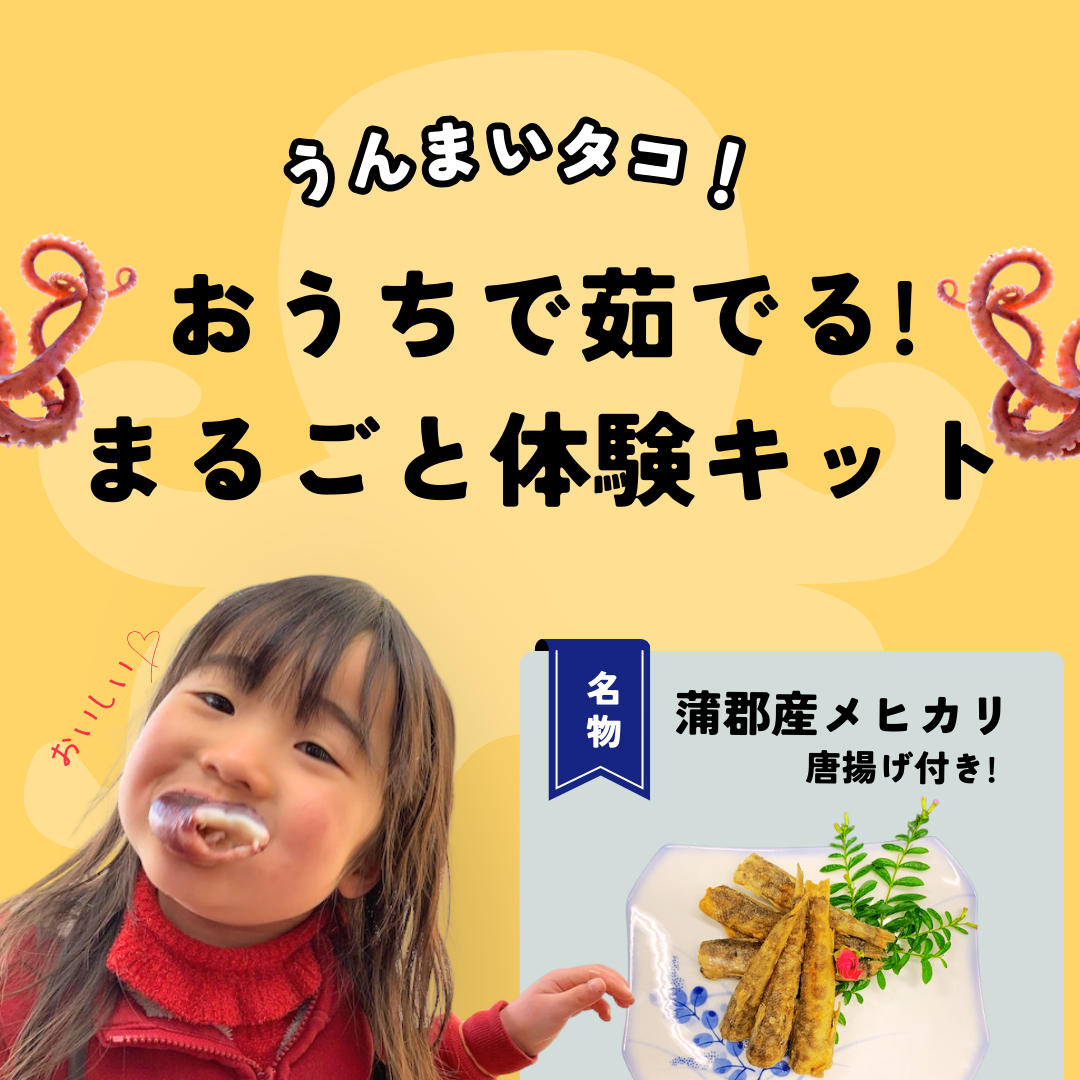 普段は、蒲郡海鮮市場の店頭で行っている「うんまいタコ茹で方体験」を、ご自宅で楽しめるキットにして蒲郡からお届けします。