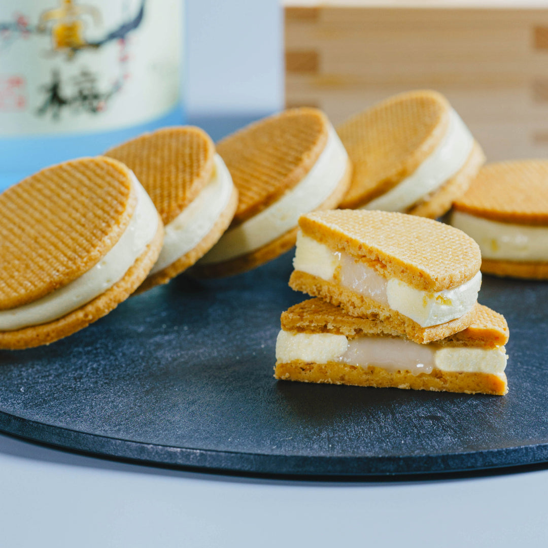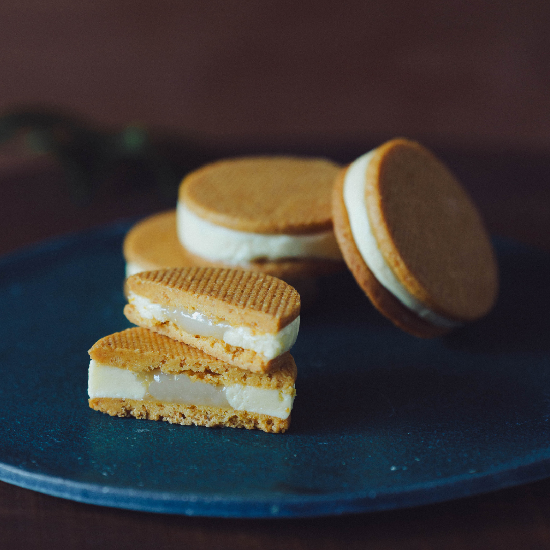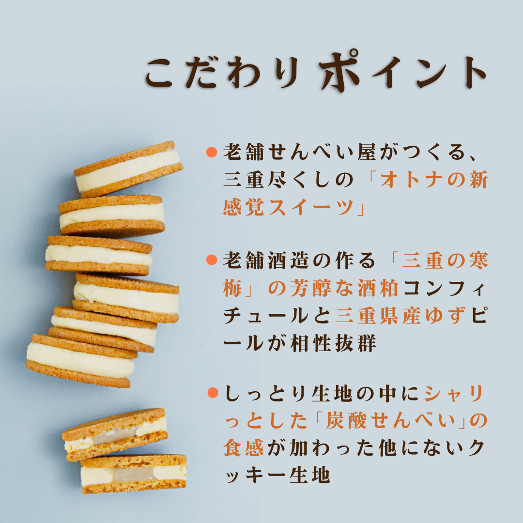 1口目はせんべいの耳が入ったクッキー生地の食感を。2口目で芳醇な酒粕と爽やかな柚子の後味をお楽しみください。