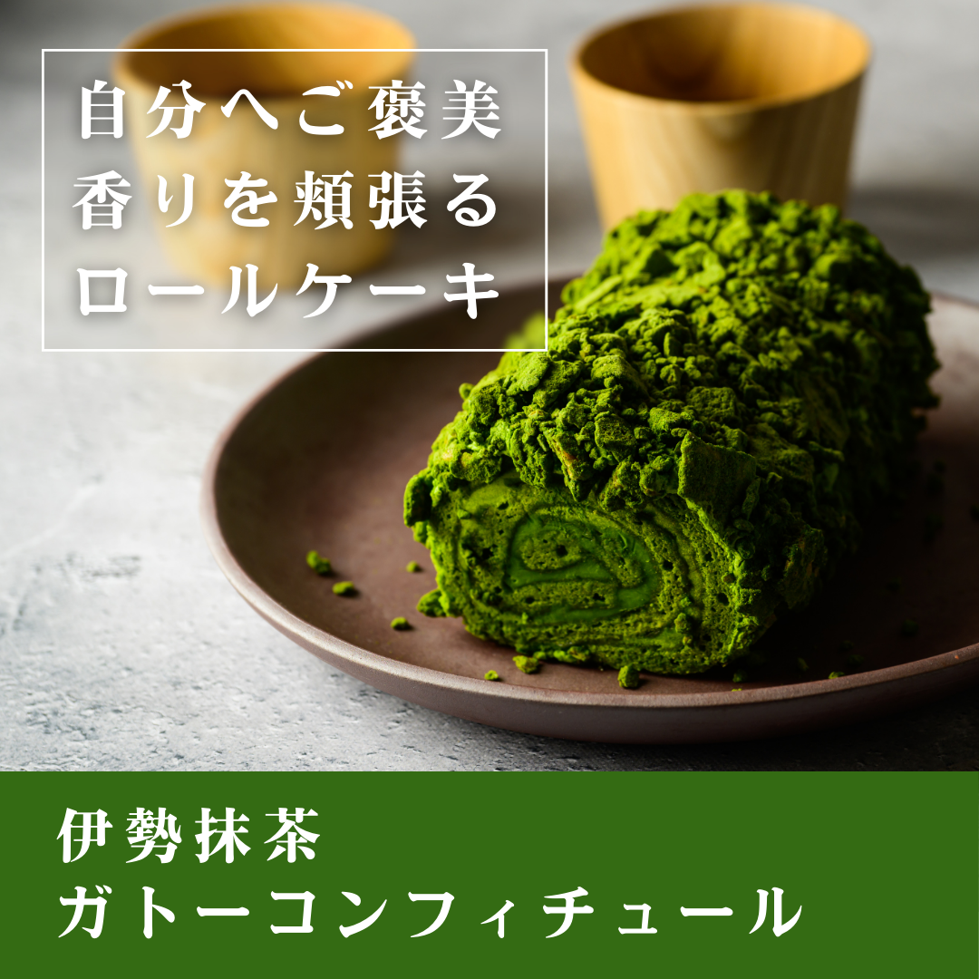 熟練のパティシエが1点1点丁寧に作る「伊勢抹茶ガトーコンフィチュール」は、伊勢抹茶のコンフィチュールが染み込んだ生地と、バタークリームで濃厚でしっとりとした食感。
