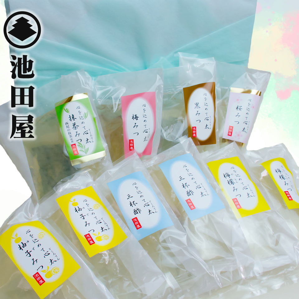 三杯酢×2、黒みつ×2、檸檬みつ×1、柚子みつ×1、桜みつ×1、抹茶みつ×1