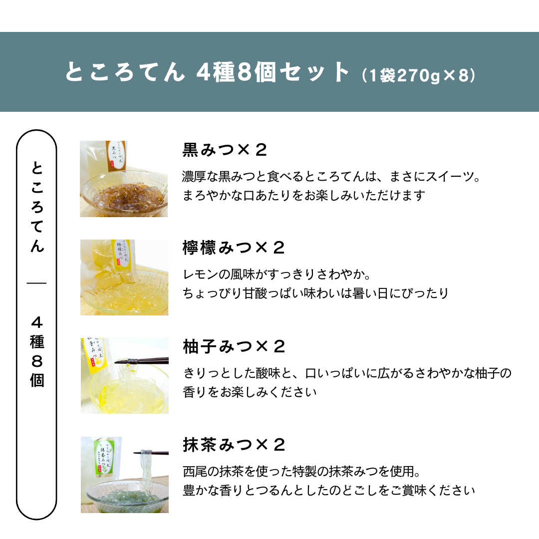 ところ天[天草(国産)、食酢] 抹茶みつ〔砂糖、抹茶(西尾産)、醸造酢〕