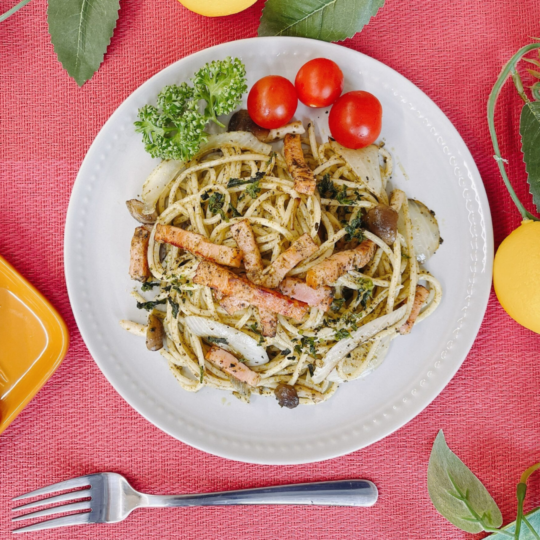 エキストラバージンオリーブオイル(スペイン産)、あおさ(三重県産)、松の実、ナチュラルチーズ(乳成分を含む)、食塩、ガーリックパウダー、粗挽き黒胡椒