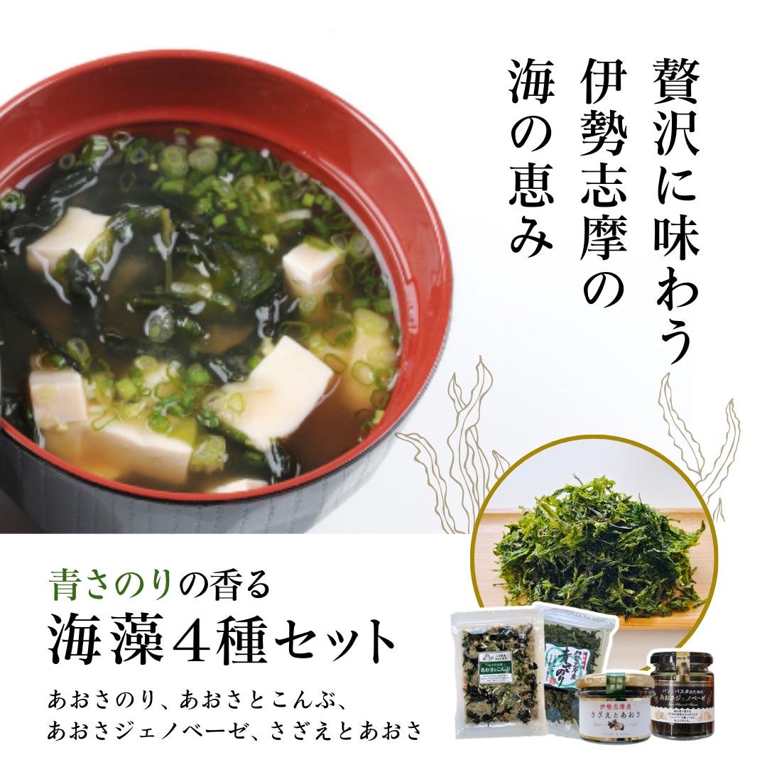 海の恵みを存分に味わえる、青さのり4種セットをぜひご家族みなさまでお楽しみください。