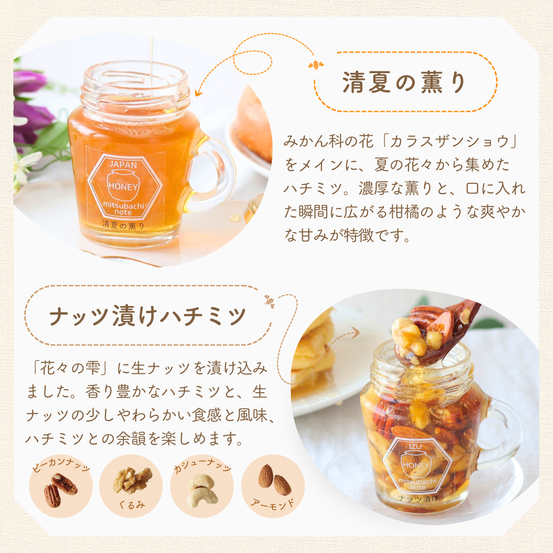 【天然生ハチミツ&ナッツ漬けハチミツセット】