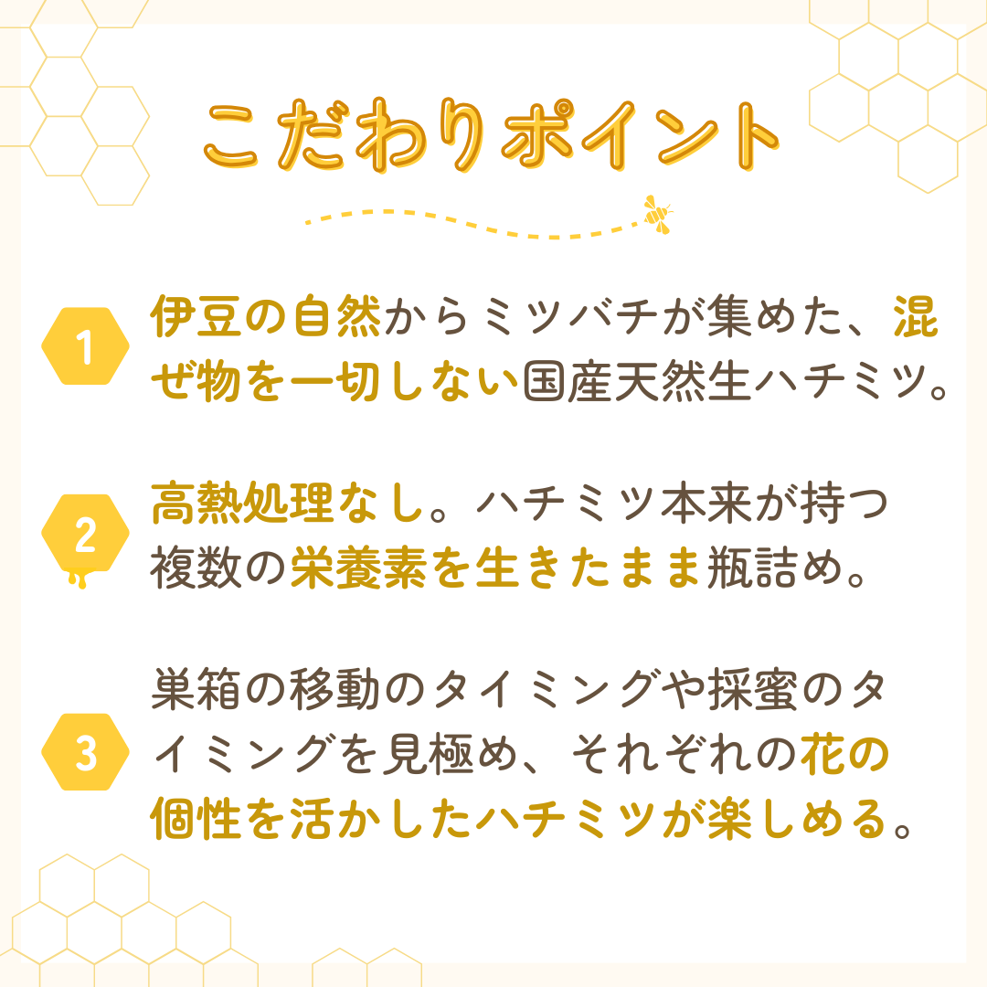 伊豆の四季を味わう、天然生ハチミツ Features