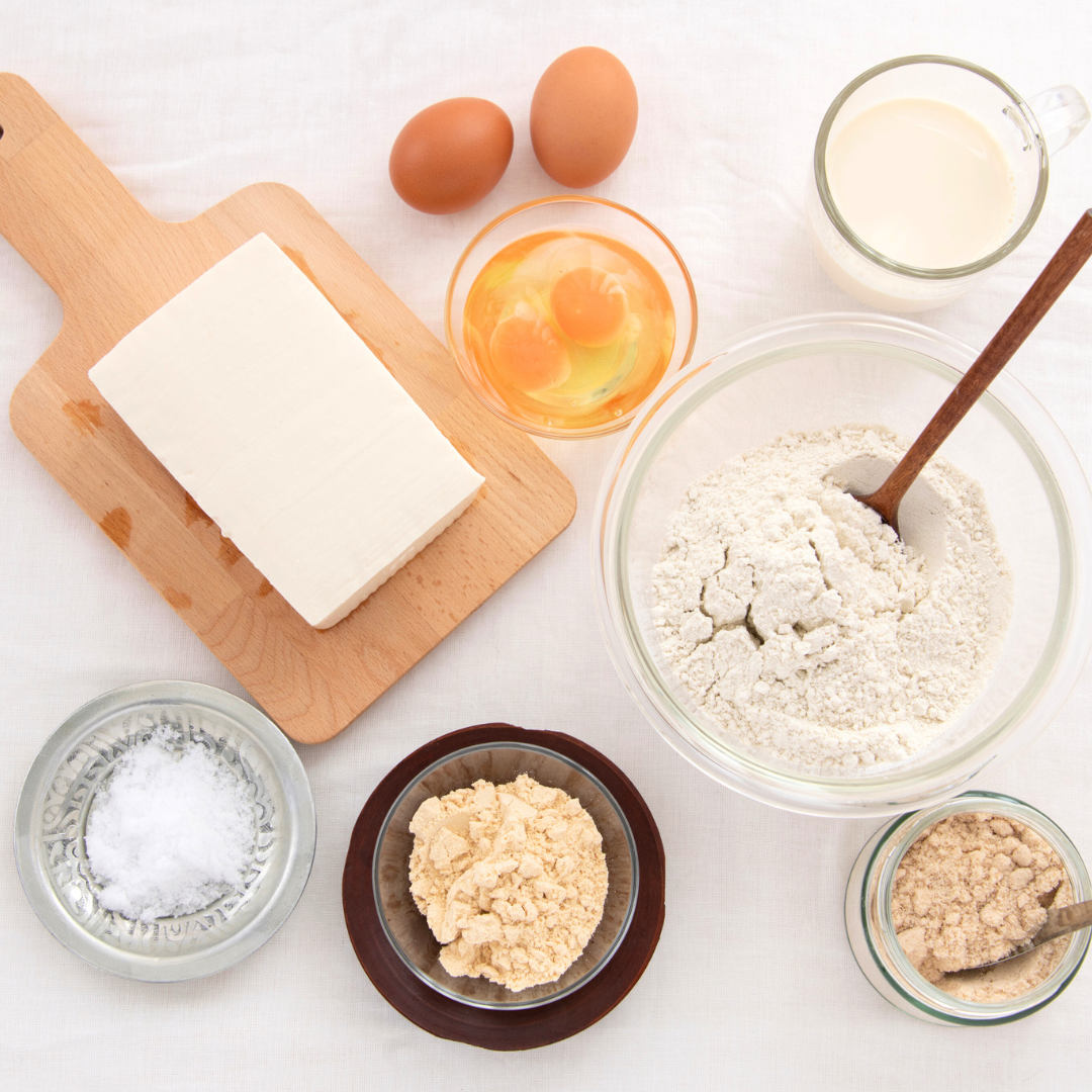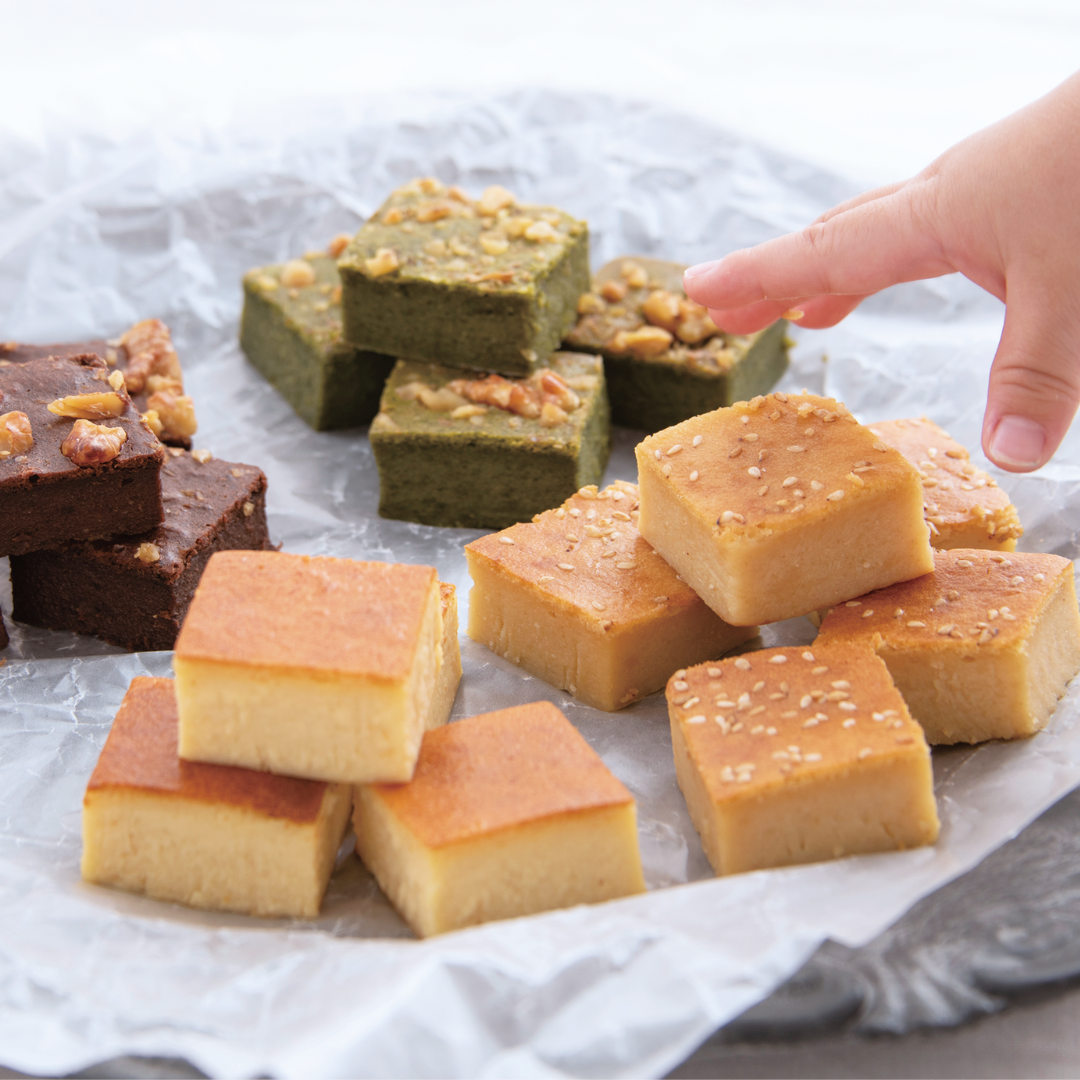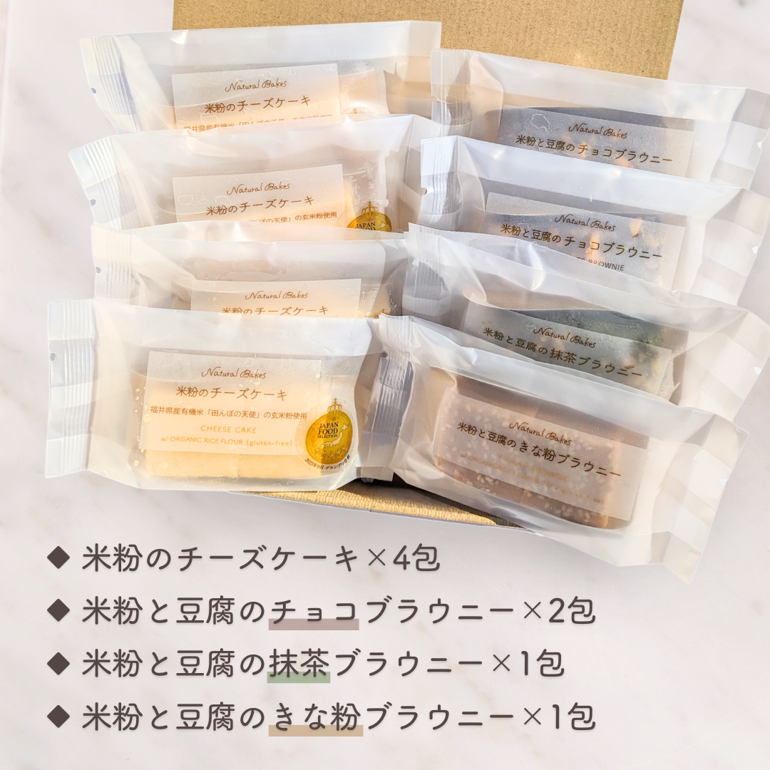 豆腐(国内製造)、ホワイトチョコ、きび砂糖、卵、豆乳(大豆)、米粉(有機玄米(福井県産))、胡桃、抹茶、片栗粉、塩/乳化剤(大豆由来)、(一部に卵・乳成分を含む)