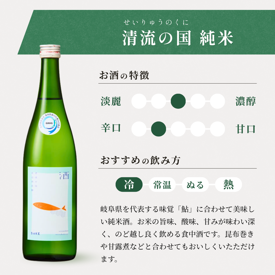 ・清流の国 純米 720ml(アルコール度数 15%)