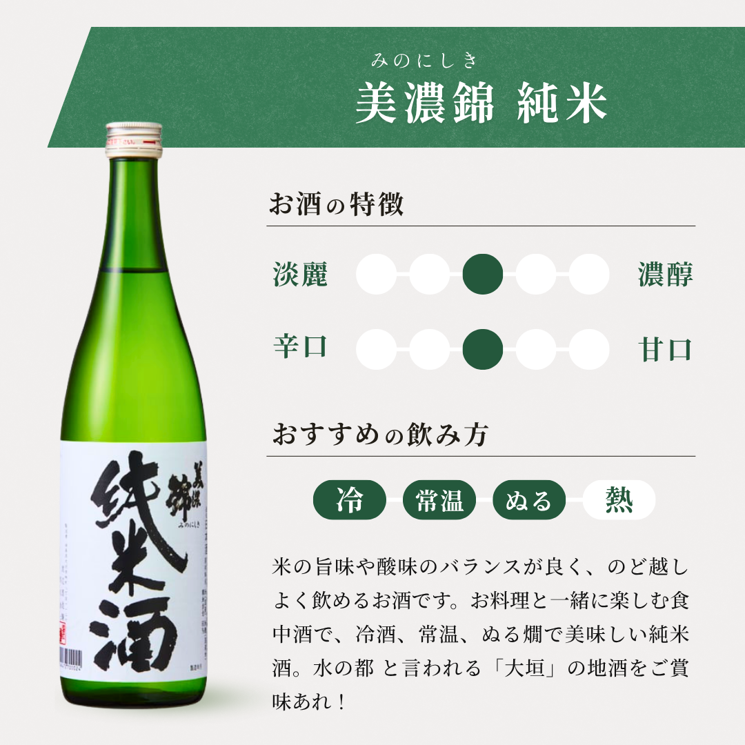 ・美濃錦 純米 720ml(アルコール度数 15%)