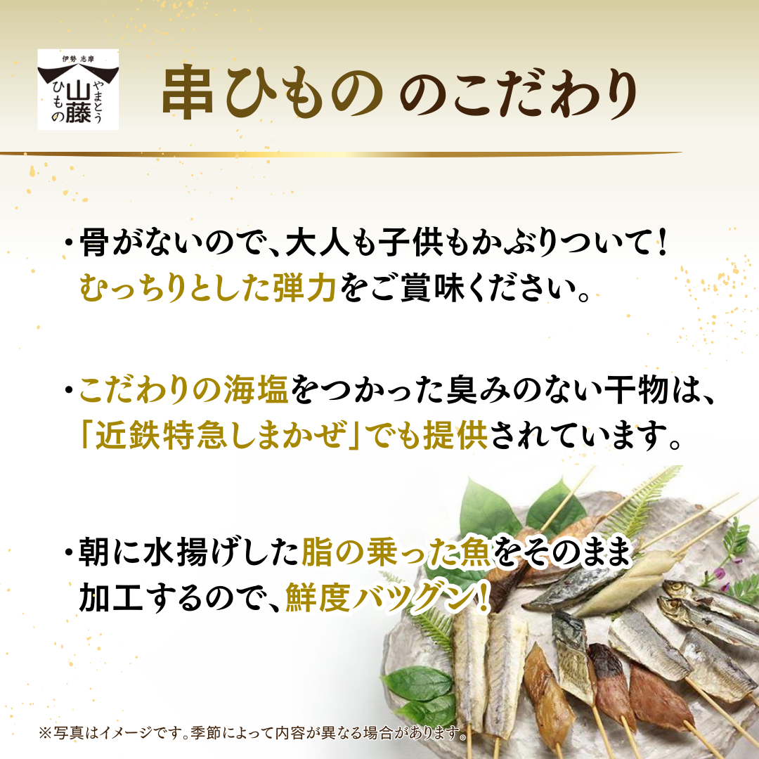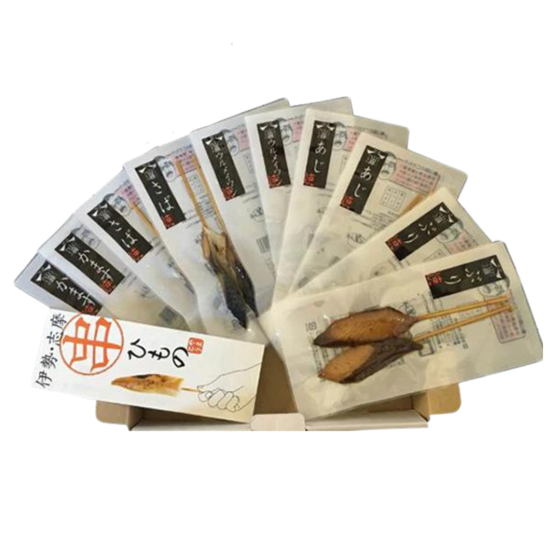 『近鉄特急しまかぜ』での車内販売品として提供された実績のあるひもの串をぜひご家庭で味わっていただけると嬉しいです。