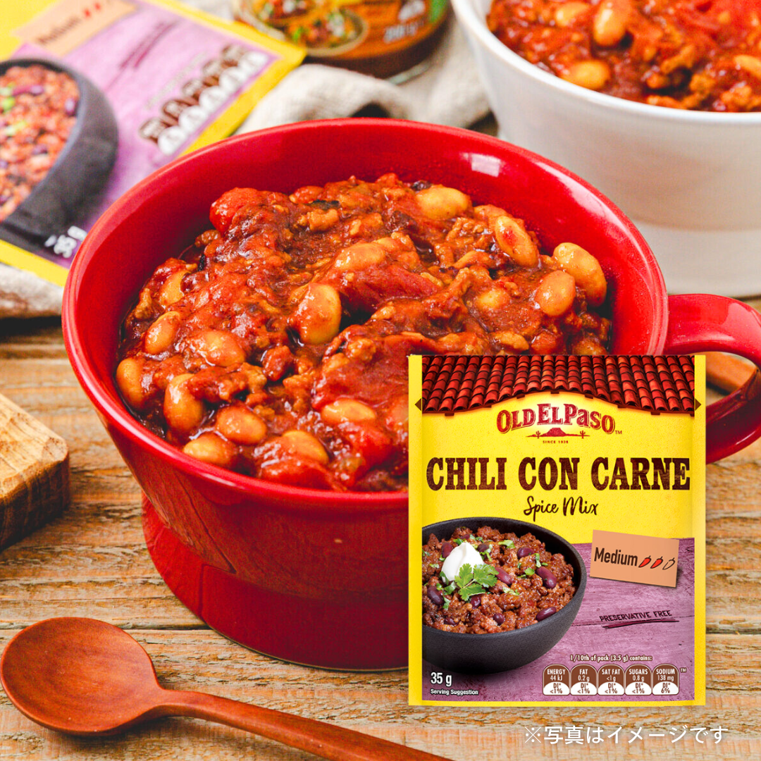 「オールドエルパソ チリシーズニング 35g」は、メキシコ料理の定番「チリコンカン」のためのスパイスミックスです。